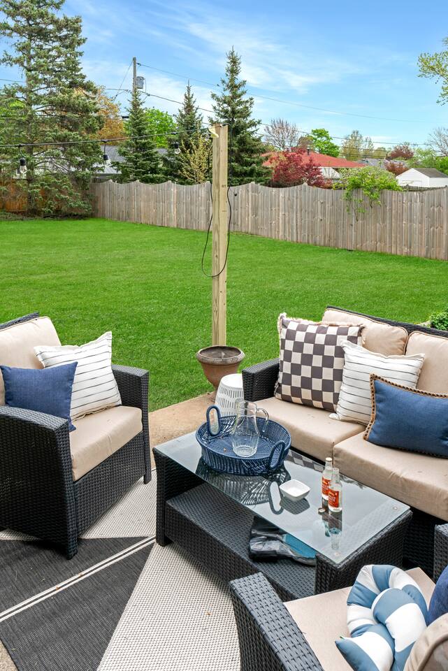 Come make memories at On Demand Bungalows' ✨BEER ENTHUSIAST THEMED✨ property!! /ōst/ (noun) kiln for drying hops Featured Amenities: 🔹 Poker table 🔹 Firepit & outdoor lounge area 🔹 Gas grill 🔹 Built-in bar and mini fridge 🌟 ‘The layout was excellent.’ 🌟 The Bedrooms: Retreat to comfort in our thoughtfully designed bedrooms, each boasting brand new furnishings and themed decor. ✔️ Bd #1: Transport yourself into an aging barrel in this stately king bed with closet, bench, and full length mirror. ✔️ Bd #2: Learn all about the production of hops and beer in our bunk room with a twin over queen bed, dresser, luggage rack and closet. ✔️ Bd #3: A pastime as old as they get. Enjoy a night in the company of our former presidents. This multi-purpose bedroom includes a queen murphy bed, as well as a folding poker table, SMART TV, fire place and built in bar. Ensuite with walk in shower. The Communal Spaces: The main living space, designed to give the feel of an old pub, offers open views to the dining space and the star of this property - a feature wall with 30+ local breweries and purveyors. The Kitchen: The fully stocked kitchen features brand new everything, ample counter space, and a pantry. Prepare delicious meals or hire a private chef to elevate your culinary experience. Better yet, add on our beer-infused cooking class! The Dining Room: With 4 chairs & a bench at the indoor dining table, and 4 bar stools/chairs throughout, there are plenty of options to enjoy your homecooked meal. While enjoying dinner, map out your brewery tour using our - you guessed it - feature wall with 30+ local breweries and purveyors! The Outdoors: The expansive fenced in backyard offers the perfect setting for relaxation and socialization. The concrete patio is appointed with outdoor lounge seating, surrounded by a wood-burning fire pit and spacious open grass area for yard games or playing fetch with the family’s furry companion. 🌟 ‘Everything about our stay was fantastic!’ 🌟 The Extras: 🔹 2 pillows per person 🔹 Free fast WIFI 🔹 Infant & kid-friendly with infant amenities available at an additional charge 🔹 WIFI-enabled key pay entry for quick and easy self check-in 🔹 2 bath towels, 1 hand towel, and 1 wash cloth 🔹 Lots of closet space, luggage racks, mirrors, and hooks throughout 🔹 Toilet paper, paper towels, tissues, napkins, dish soap, hand soap, basic cleaning supplies, and garbage bags provided 🔹 Shampoo, conditioner, body wash, lotion, and hair dryer provided 🔹 Iron and ironing board provided 🔹 Access to washer & dryer 🌟 ‘The Oast House is a MUST STAY and highly recommend.’ 🌟 The Location: This house is located just minutes from I-290. It is less than 0.5 miles to a local playground, basketball, pickle ball, and tennis courts, and Lehigh Memory Trail, a short paved trail that starts at the Williamsville Depot, a historic railroad depot constructed in 1896, and runs through the heart of the village. 📍Buffalo Niagara Int'l Airport 2.4 mi., ~7 mins 📍Wegmans 2.6 mi., ~9 mins 📍Northtown Center 5.5 mi., ~ 11 mins 📍Key Bank Center 12 mi., ~16 mins 📍Downtown Buffalo 10 mi., ~ 17 mins 📍Highmark Stadium 16 mi., ~21 mins